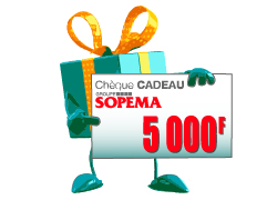 Pour un anniversaire, un mariage, une fête, soyez certains de faire plaisir en offrant, selon votre choix, des chèques cadeaux d’une valeur de 5 000 FCFP ou 10 000 FCFP, chèques utilisables dans tous les magasins du Groupe SOPEMA (durée de validité : 3 mois).